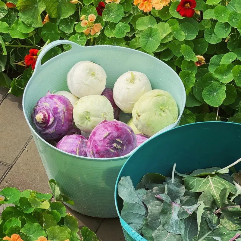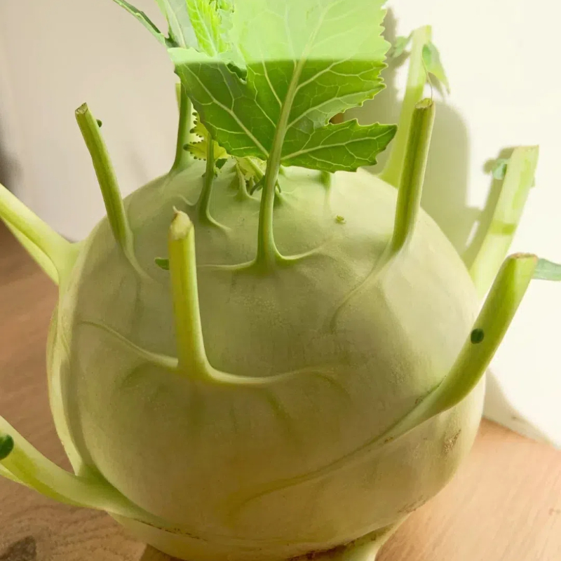 Baby Kohlrabi: Ready in about 6 weeks at golf ball size for a tender, delicate texture.