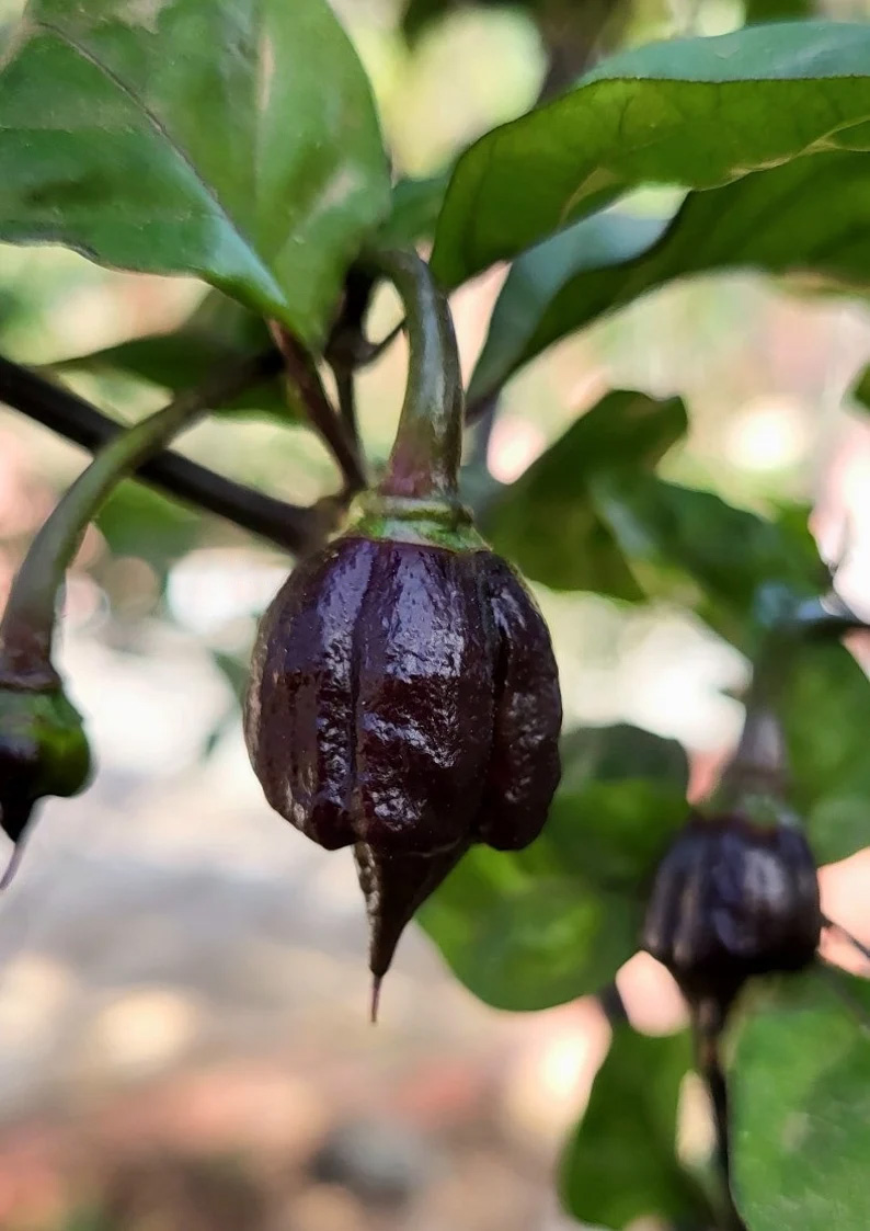 This chilli called Carolina black reaper is a somewhat darker variety of the Purple reaper, it has fruits in some cases of a very shiny black colour that turn red when ripe. It is an extremely hot pepper that generally has a wide variety of shapes in its fruit and its cultivation is identical to the rest of the chillies and a spiciness very close to that of the Carolina reaper hp22b (it is probably somewhat less).