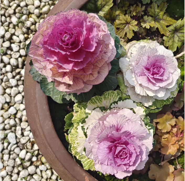 🪷In winter, kale looks as bright as a rose. Kale is also called leaf peony, peony, etc. It is a very popular foliage plant.