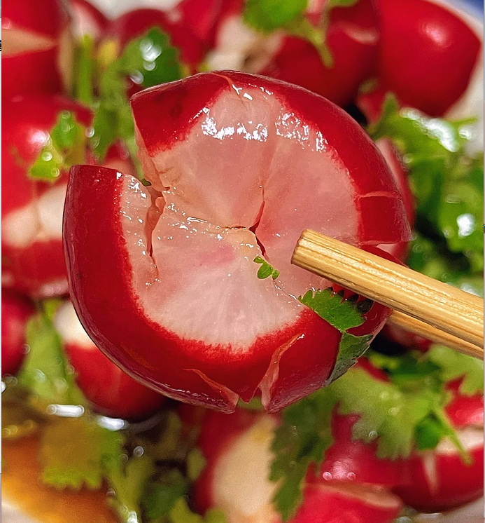 💦Its rind is bright red and the flesh is white, with a crispy texture and delicious taste. Both roots and leaves of radish are edible. Crisp, tender and refreshing, it has the best effect of relieving greasiness and hangover.