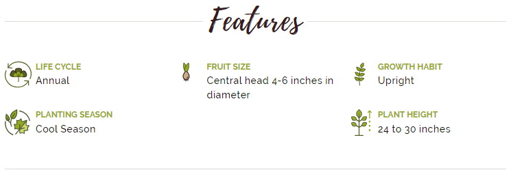 This gourmet variety is delicious from top to bottom, with really exceptional flavor and texture. But what you may appreciate just as much, as a gardener, is its yields. Once you harvest the central crown (which you can do at about 50 days; it will be small but scrumptious), about 5 or 6 side-shoots will appear. A little more than a week later, these can be harvested as well, so that new ones grow. The process repeats for more than a month. That's an amazing harvest from every plant, and the later side-shoots are just as delectable as the first ones.