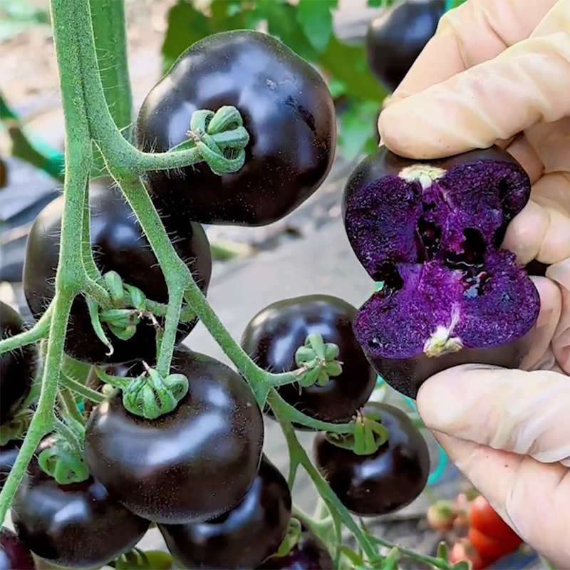 It is green at first, gradually turns to purple-black, and turns red-purple when fully ripe. This is the first batch of organic cultivation in the picking garden this year. Tomatoes are rich in anthocyanins, taste sweet and sour, and have ten times more nutrients than red tomatoes.