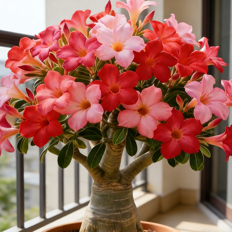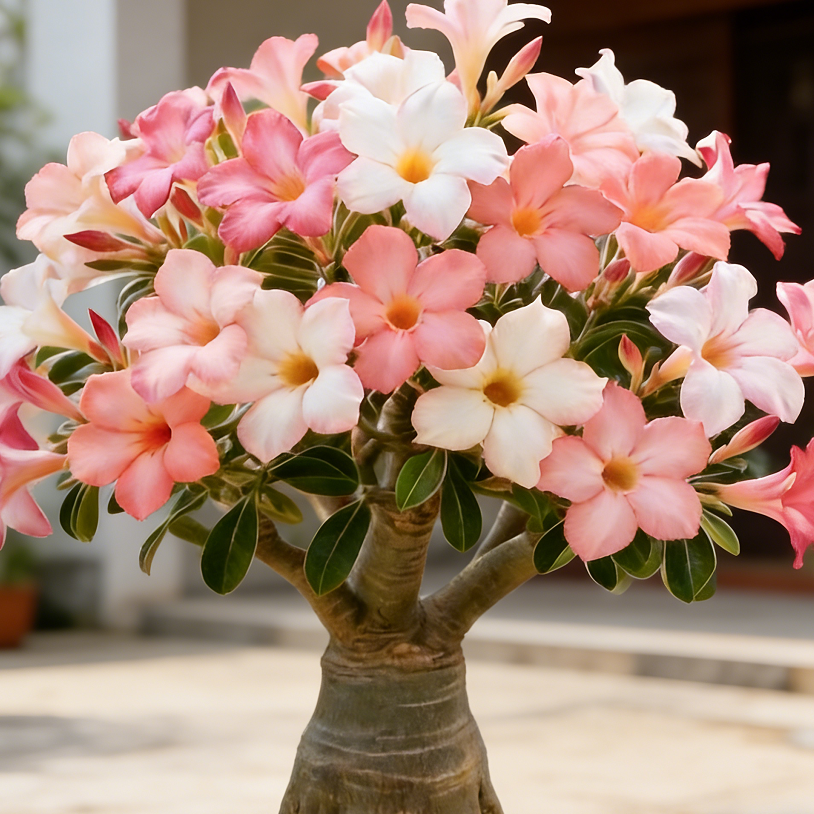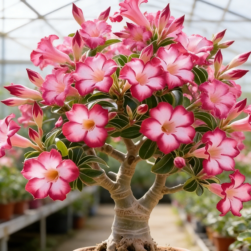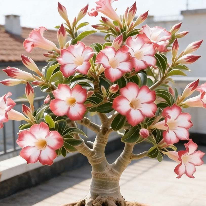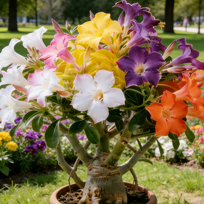 🌵The desert rose originates from Africa and the Arabian Peninsula. It boasts a rich variety of flower colors, large blooms, and a beautiful shape. Suitable for garden flower beds, balcony potted plants, or indoor display, it possesses both ornamental and collectible value.