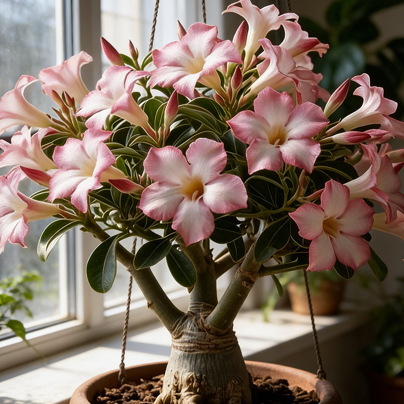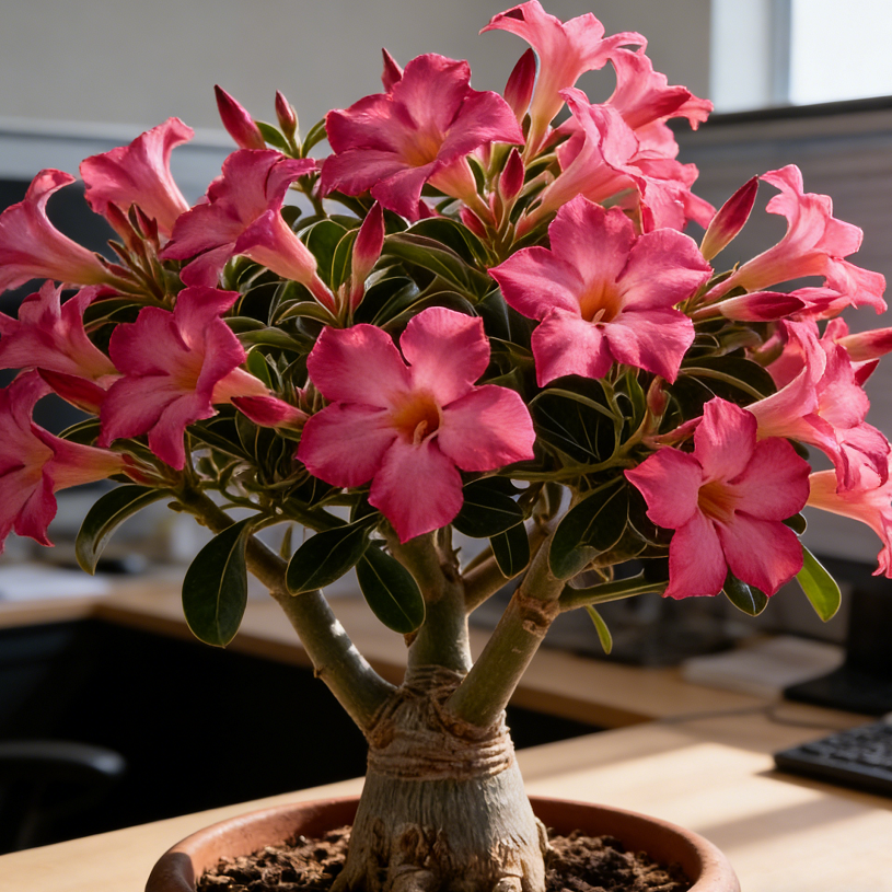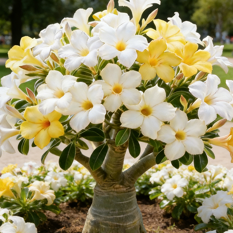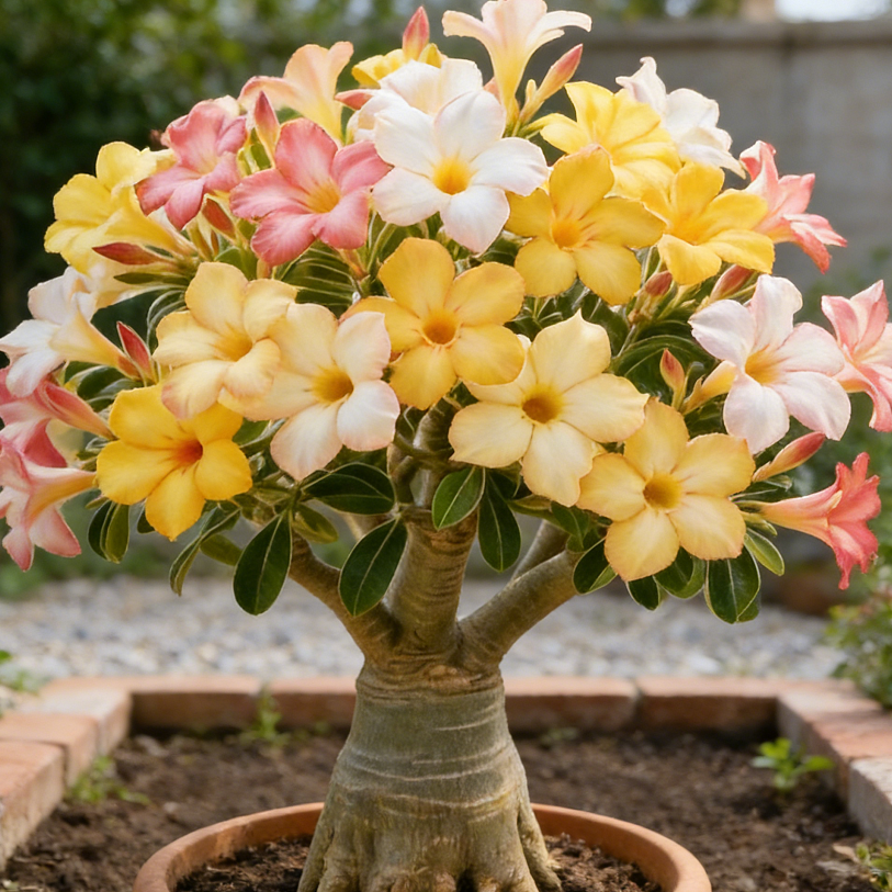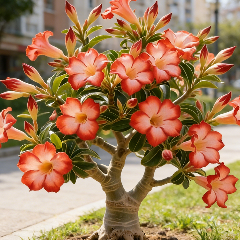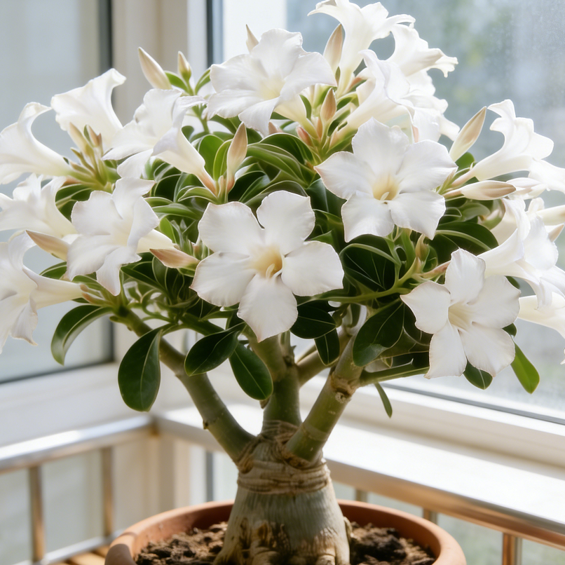 🌵The desert rose originates from Africa and the Arabian Peninsula. It boasts a rich variety of flower colors, large blooms, and a beautiful shape. Suitable for garden flower beds, balcony potted plants, or indoor display, it possesses both ornamental and collectible value.