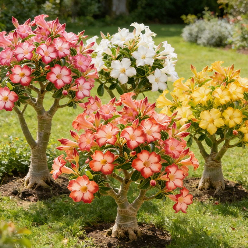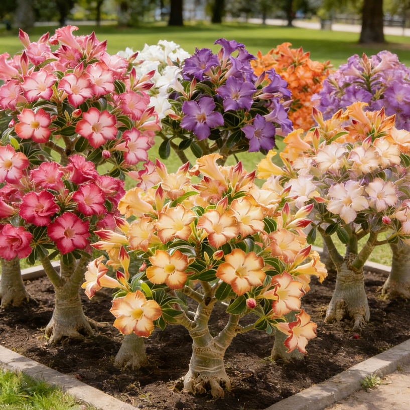 🌈Desert roses grow rapidly and are very easy to cultivate. Their thick rhizomes store water, making them drought-tolerant and ideal for potted plants and flower borders.