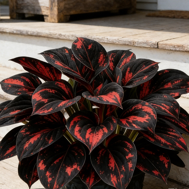 Crimson Hosta, with its unique and elegant black and red leaves, adds layers and texture to your garden.